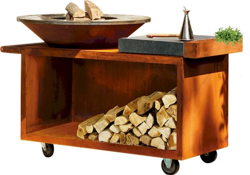 Het OFYR Island is een alles-in-één kooktoestel dat vervaardigd is van Cortenstaal. Cortenstaal is verweerd staal dat gedurende het gehele jaar buiten kan blijven staan.